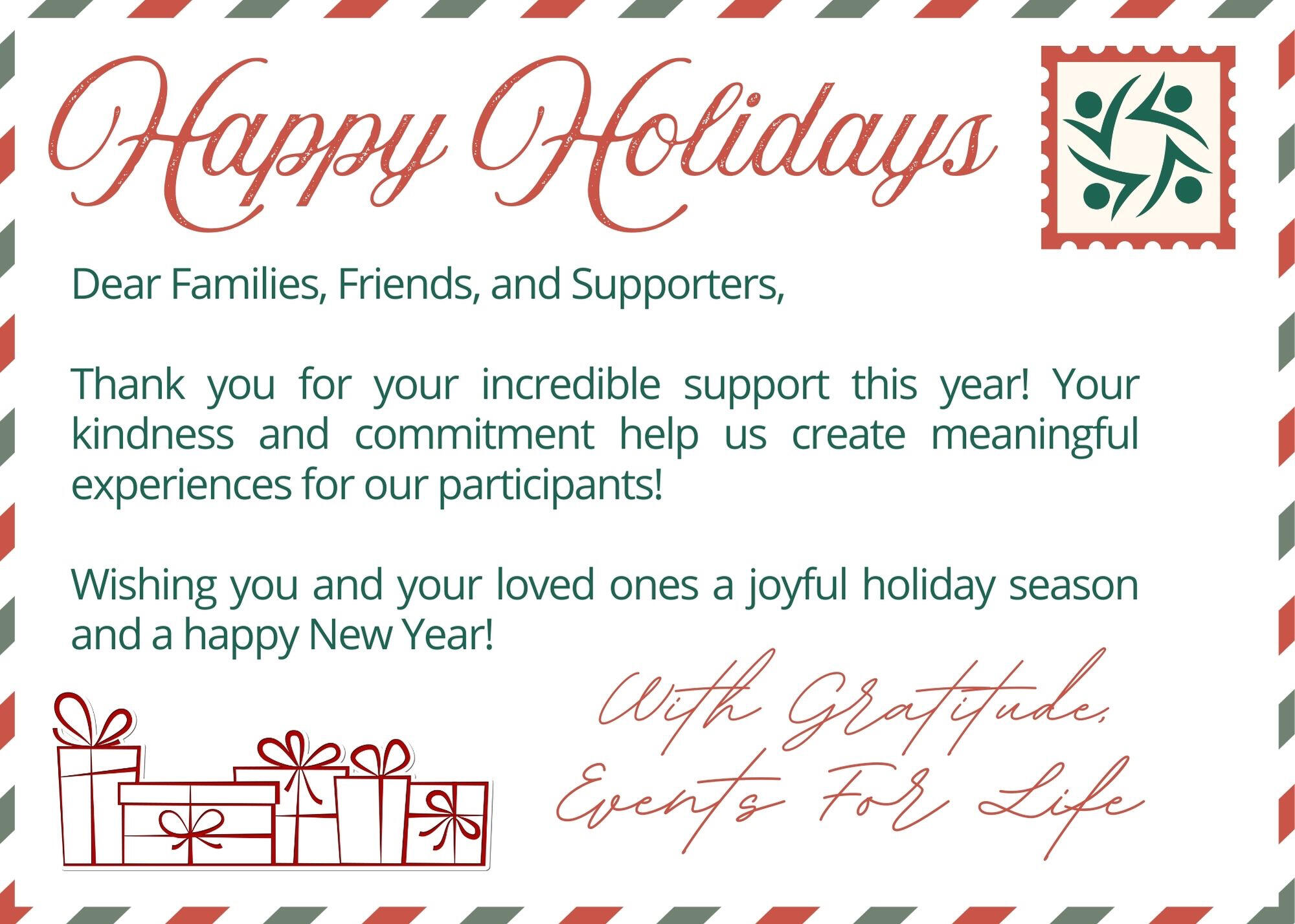 Events for Life will be recognized as a leading organization supporting individuals with special needs allowing them to live, learn and work in an integrated, inclusive community.