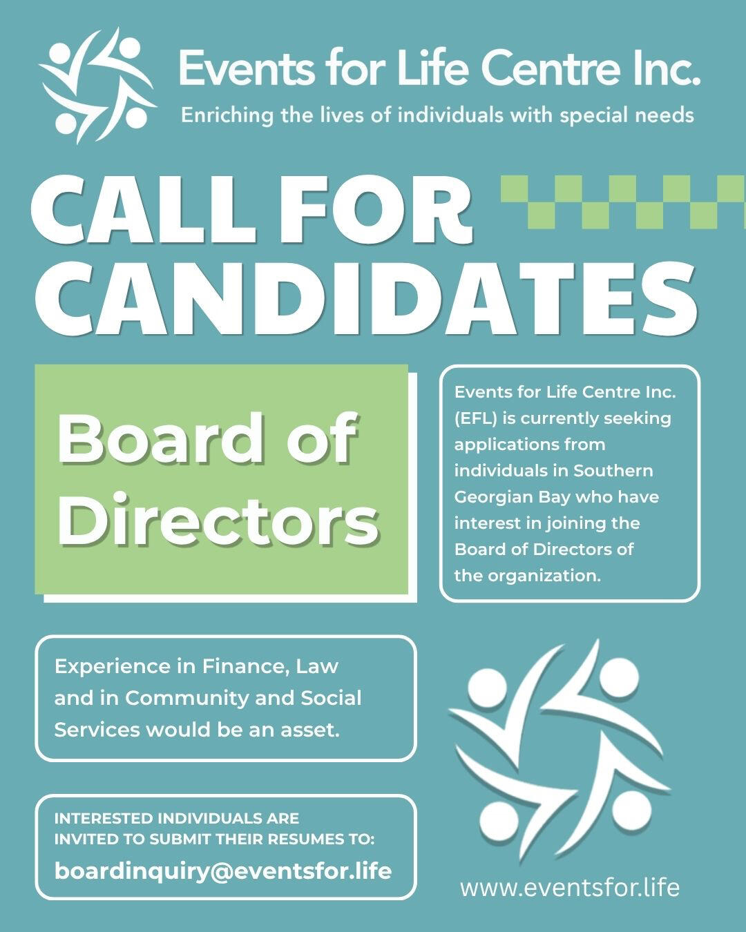 Events for Life will be recognized as a leading organization supporting individuals with special needs allowing them to live, learn and work in an integrated, inclusive community.